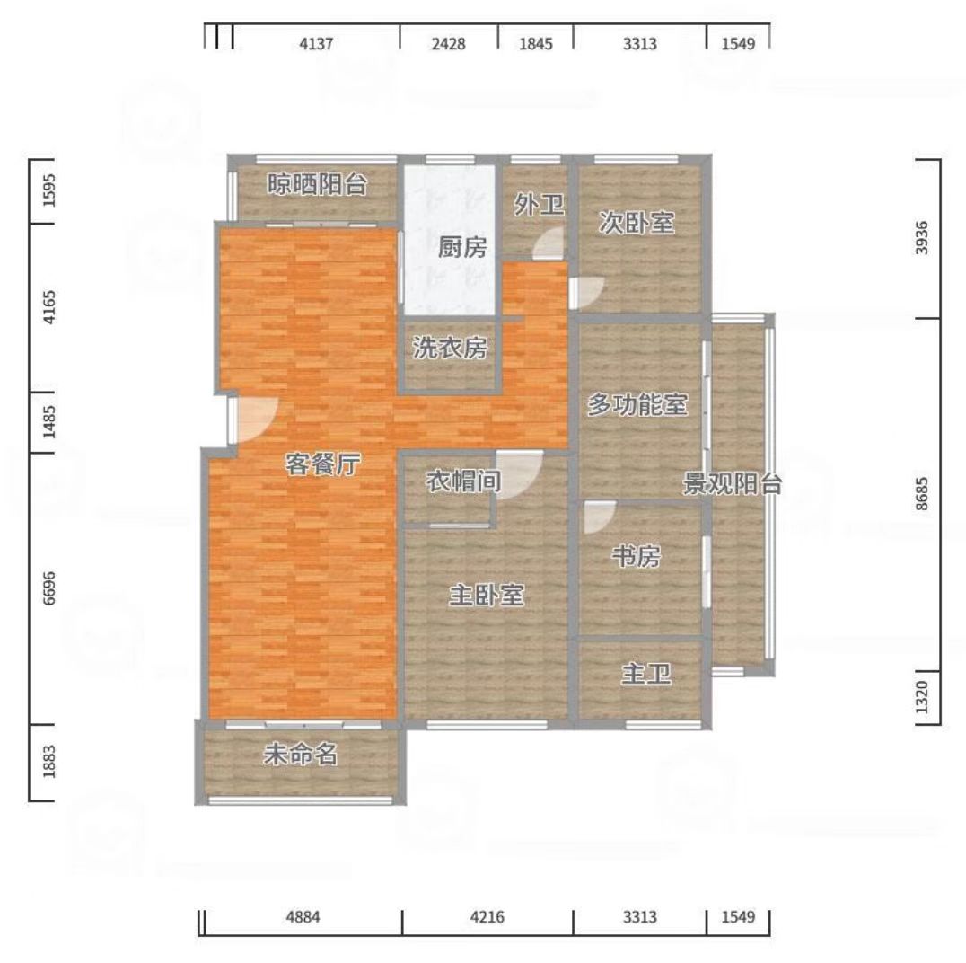 客廳主要采用以白灰為基調,用活潑熱情的愛馬仕橙點亮整個家居空間,打破沉悶注入鮮活生動的氣息在微暖微寒的秋日時光,增加了一絲活躍的層次感和輕奢感。
