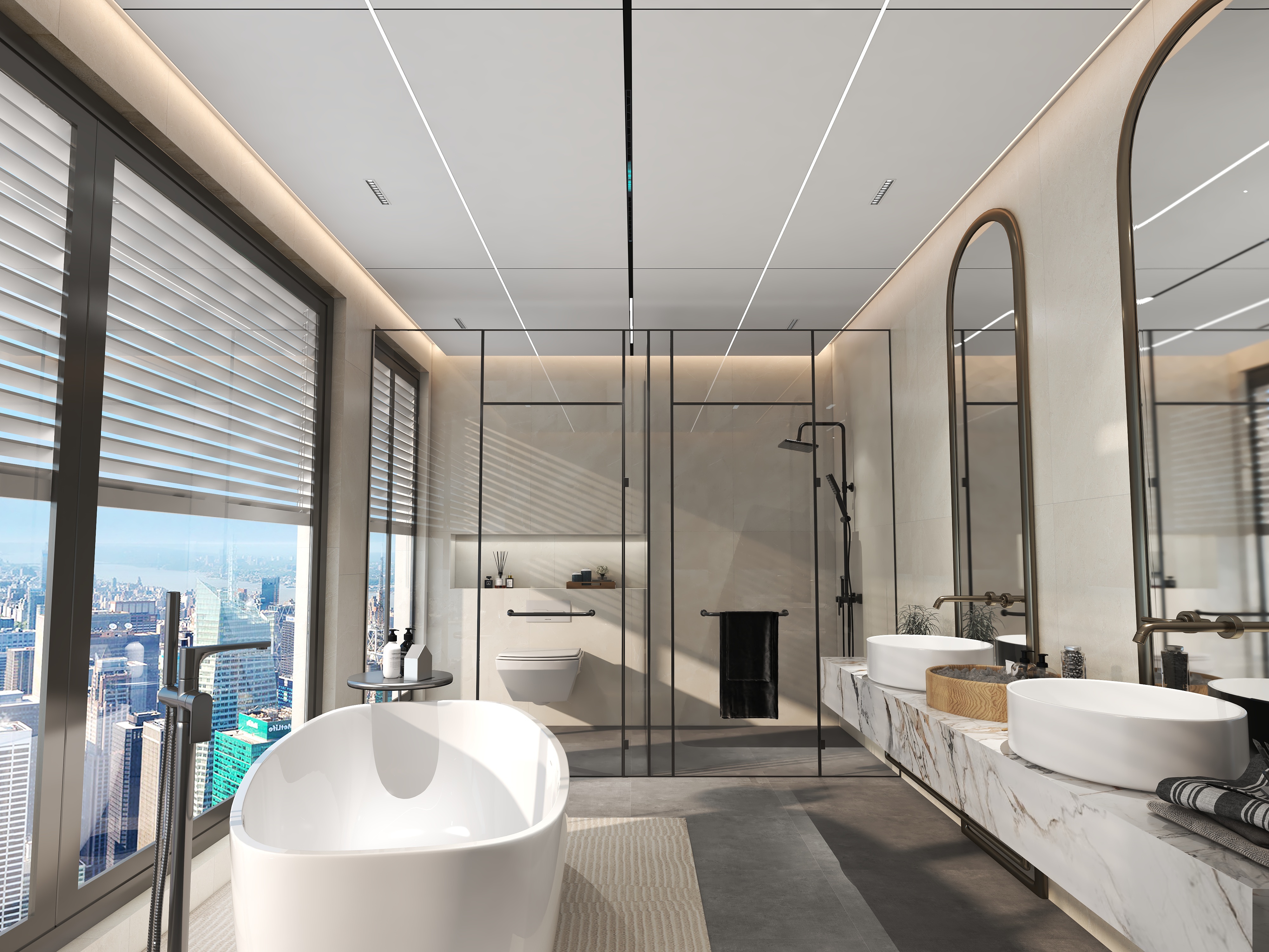 衛生間整體的深灰色溫柔又平靜,干濕分離的設計讓實用性更強;蜂窩大板吊頂搭配星雅圖浴室暖空調,忙碌了一天之后在浴缸中泡個澡,緩解疲勞,促進循環,再開啟神清氣爽的一天!