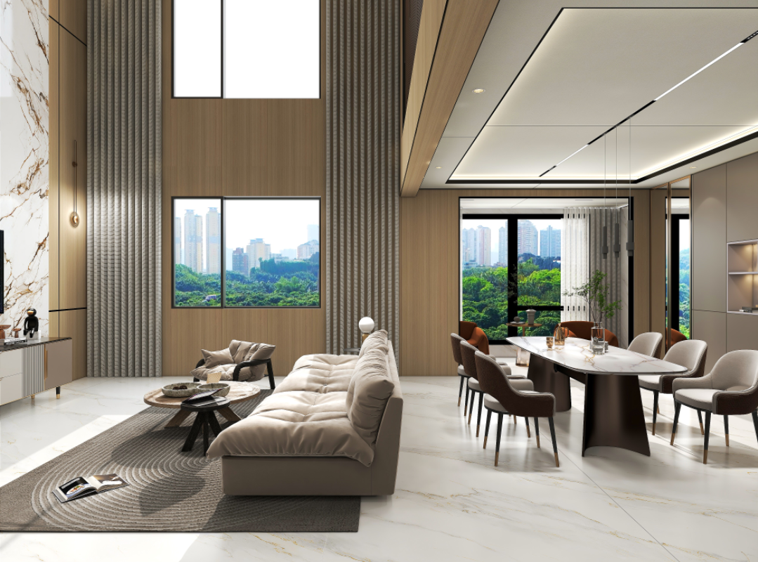 摒棄了浮華的裝飾,透過“簡化”的思維手法,帶出材質最原始的面貌;注重居者的生活習慣,搭配著5D石紋打印畫背景墻與休閑沙發(fā),多了一點視覺與動線的流暢;客廳布局松散自由,設計簡潔明了,給予人放松無拘束的氛圍感,溫潤且包容。